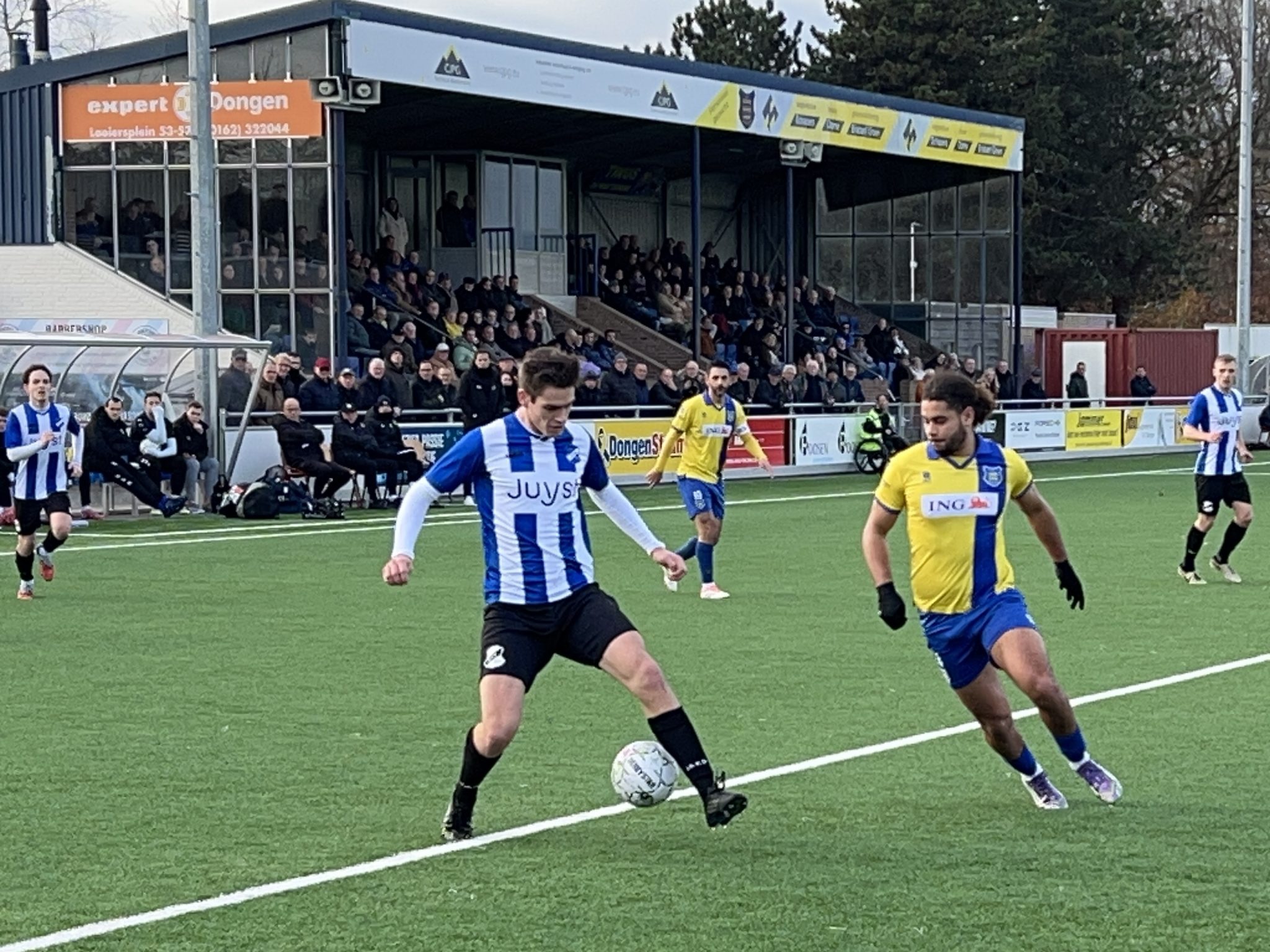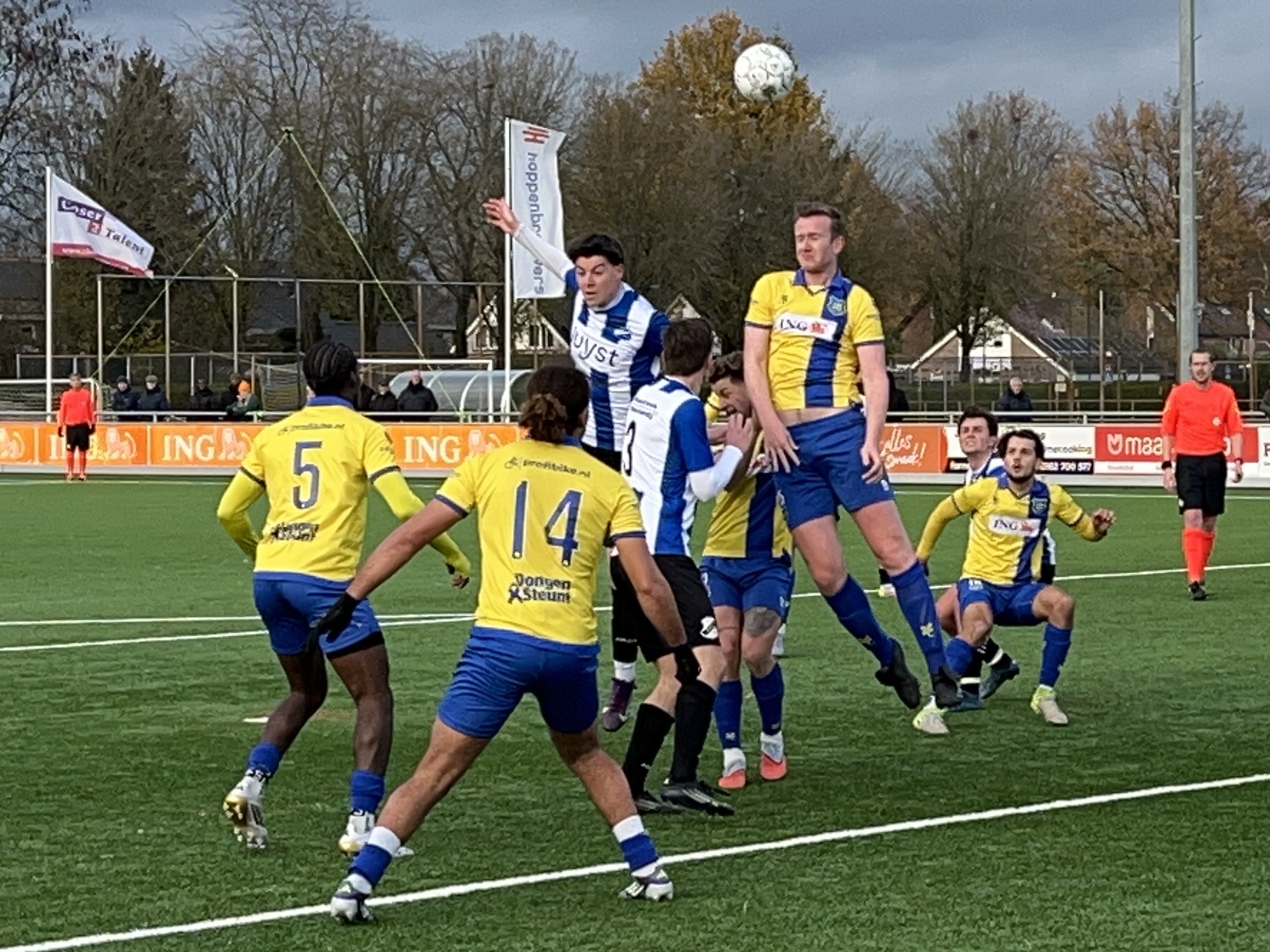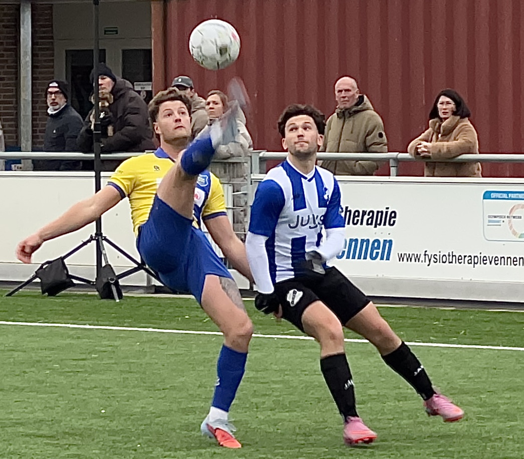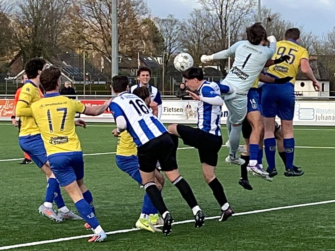 Even later was Teun de Leeuw namens Dongen weer dicht bij een voorsprong. Zijn inzet verdween via de lat over het doel.