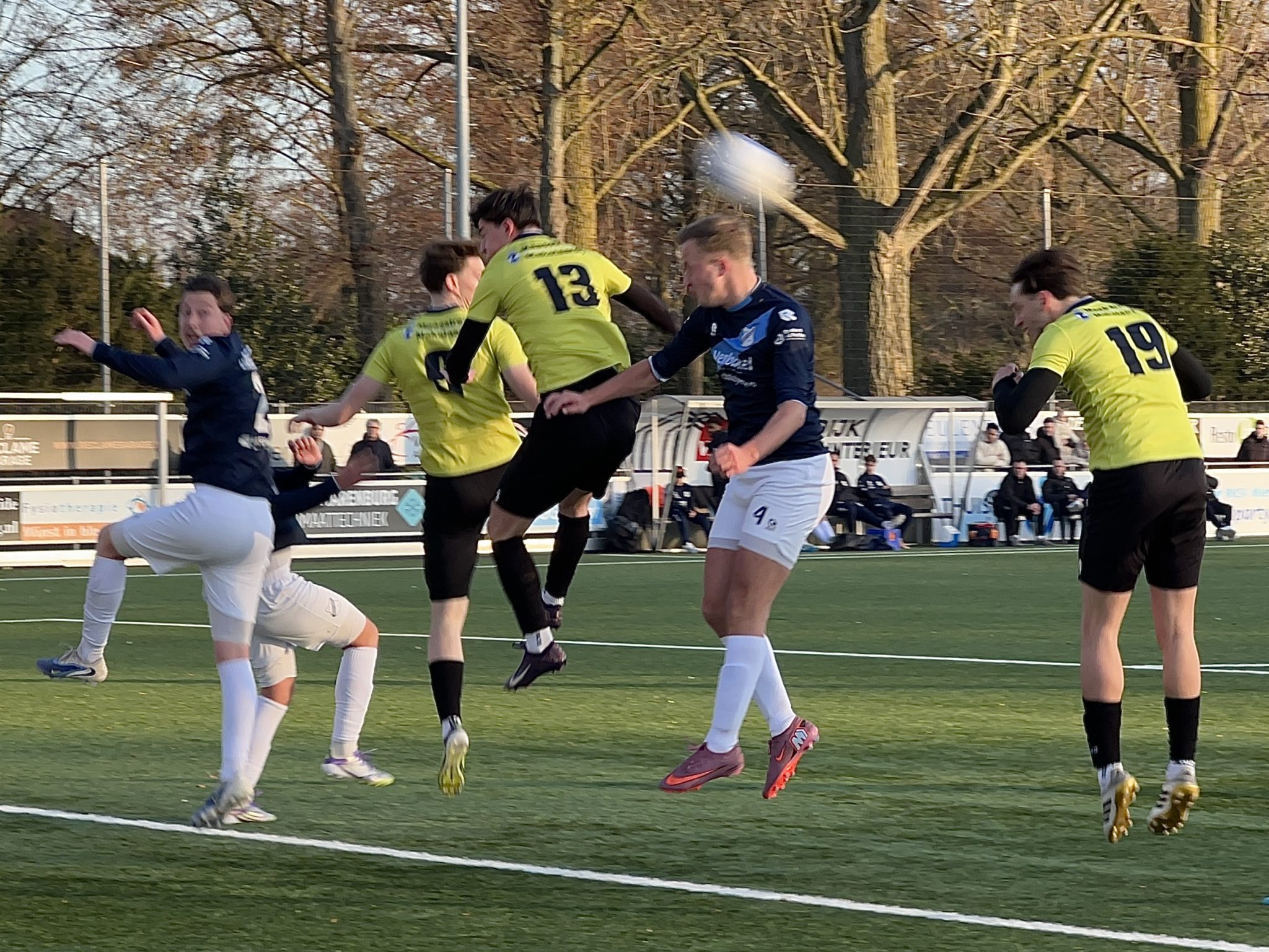 De 2e helft bood heel wat meer spektakel. Eerst was er een vrije trap van Bob Vankan. Seb Loeffen kopte de bal voor het doel alwaar Rico Zeegers net niet het laatste tikje kon geven.